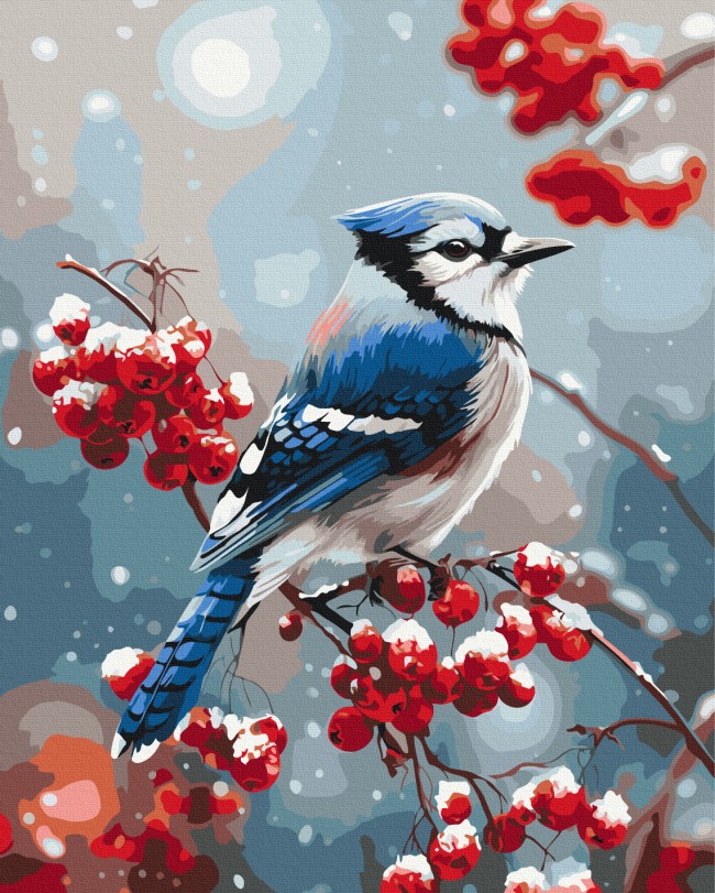გასაფერადებელი ნომრებით BrushMe BS54498 A bird on a frosty branch 40*50სმ. ტილო, აკრილის საღ, ფუნჯი