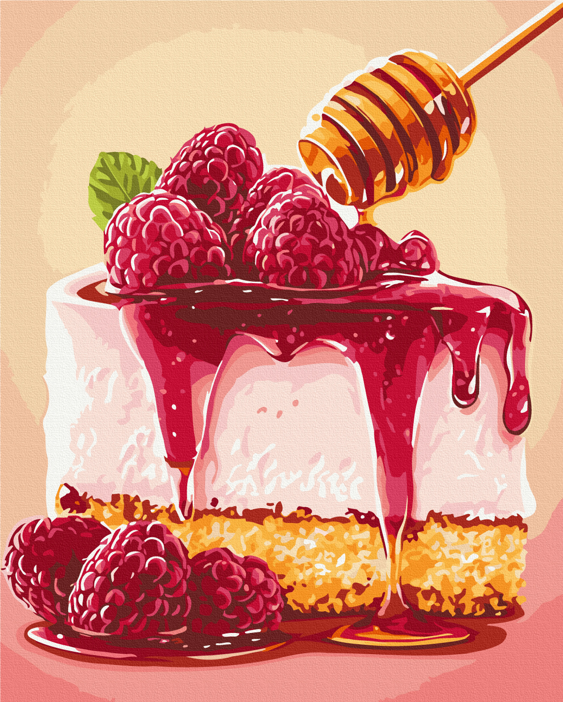 გასაფერადებელი ნომრებით BrushMe BS54445 Raspberry cheesecake 40*50სმ. ტილო, აკრილის საღ, ფუნჯი