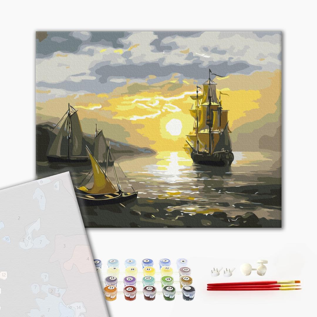 გასაფერადებელი ნომრებით BrushMe BS52673 Sailboat at sunset 40*50სმ. ტილო, აკრილის საღ, ფუნჯი