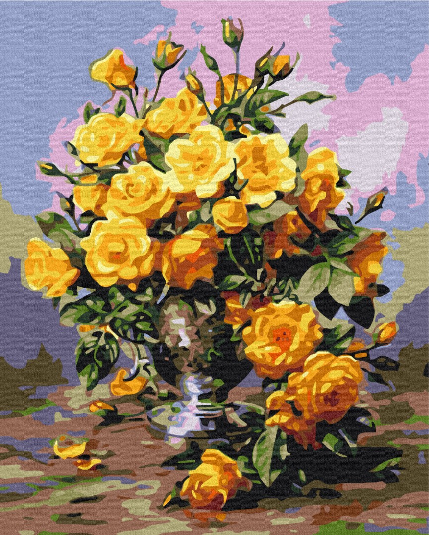 გასაფერადებელი ნომრებით BrushMe BS51981 Bouquet of yellow roses 40*50სმ. ტილო, აკრილის საღ, ფუნჯი