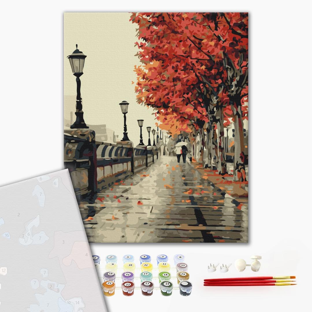 გასაფერადებელი ნომრებით BrushMe BS117 Autumn Boulevard 40*50სმ. ტილო, აკრილის საღ, ფუნჯი