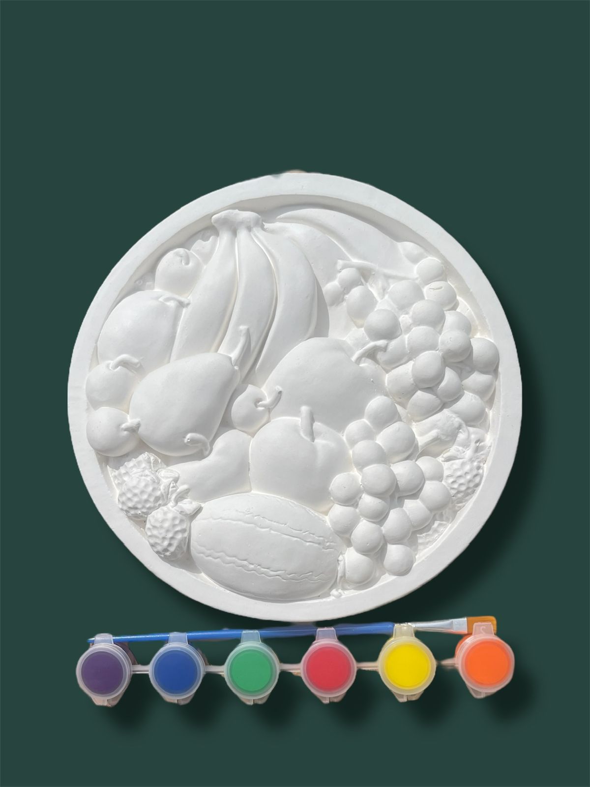 გასაფერადებელი ფორმები თაბაშირის ნაკრები MN-505 ხილი მრგვალი, საღებავით და ფუნჯით