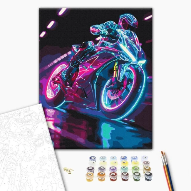 გასაფერადებელი ნომრებით BrushMe BS54134 Neon speed with fluorescent inks 40*50სმ. ტილო, აკრილის საღ, ფუნჯი