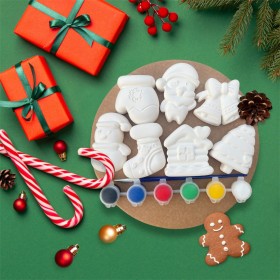 გასაფერადებელი ფორმები თაბაშირის ნაკრები MN-330 საახალწლო მინი 7ც, 2024, აკრილის საღებავი 6ფ, ფუნჯი