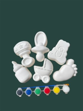 გასაფერადებელი ფორმები თაბაშირის ნაკრები MN-334 BABY; საღებავით და ფუნჯით