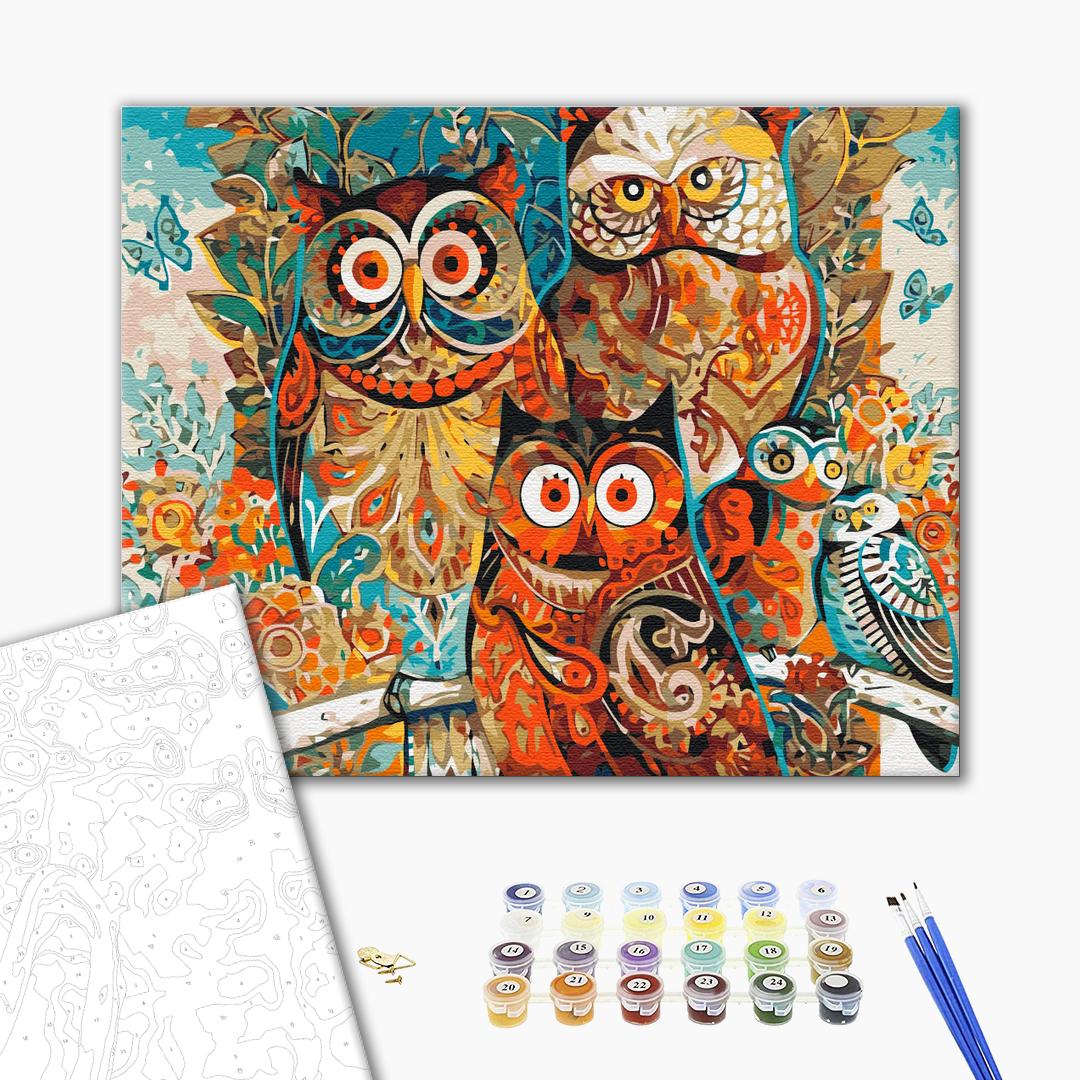 გასაფერადებელი ნომრებით BrushMe BS8849 Magical owls 40*50სმ. ტილო ჩარჩოზე, აკრილის საღებავი, ფუნჯები /ნაკრები/