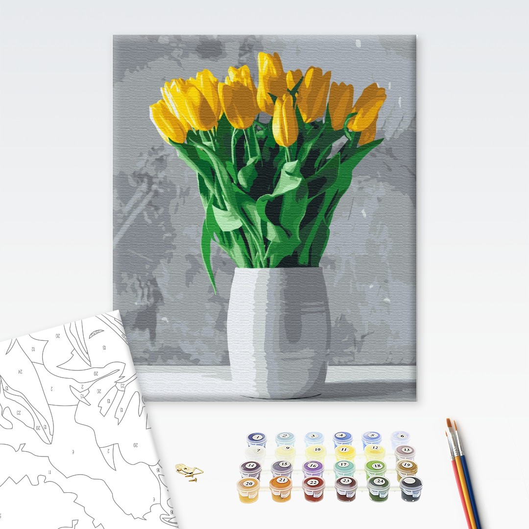გასაფერადებელი ნომრებით BrushMe BS52639 Bouquets of yellow tulips 40*50სმ. ტილო ჩარჩოზე, აკრილის საღებავი, ფუნჯები /ნაკრები/