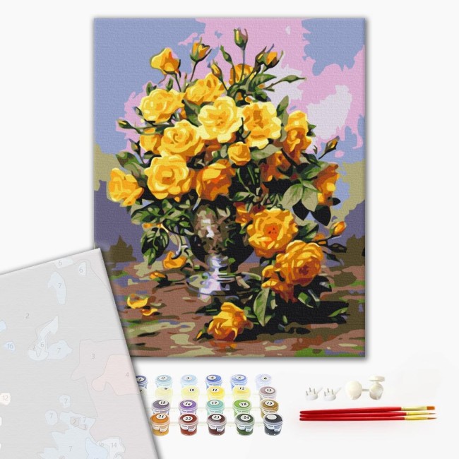 გასაფერადებელი ნომრებით BrushMe BS51981 Bouquet of yellow roses 40*50სმ. ტილო, აკრილის საღ, ფუნჯი