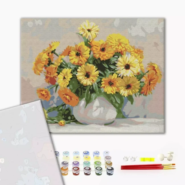 გასაფერადებელი ნომრებით BrushMe BS51429 Luxurious bouquet in a vase 40*50სმ. ტილო, აკრილის საღ, ფუნჯი