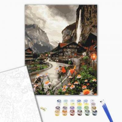 გასაფერადებელი ნომრებით BrushMe BS36527 Town in Switzerland 40*50სმ. ტილო ჩარჩოზე, აკრილის საღებავი, ფუნჯები /ნაკრები/
