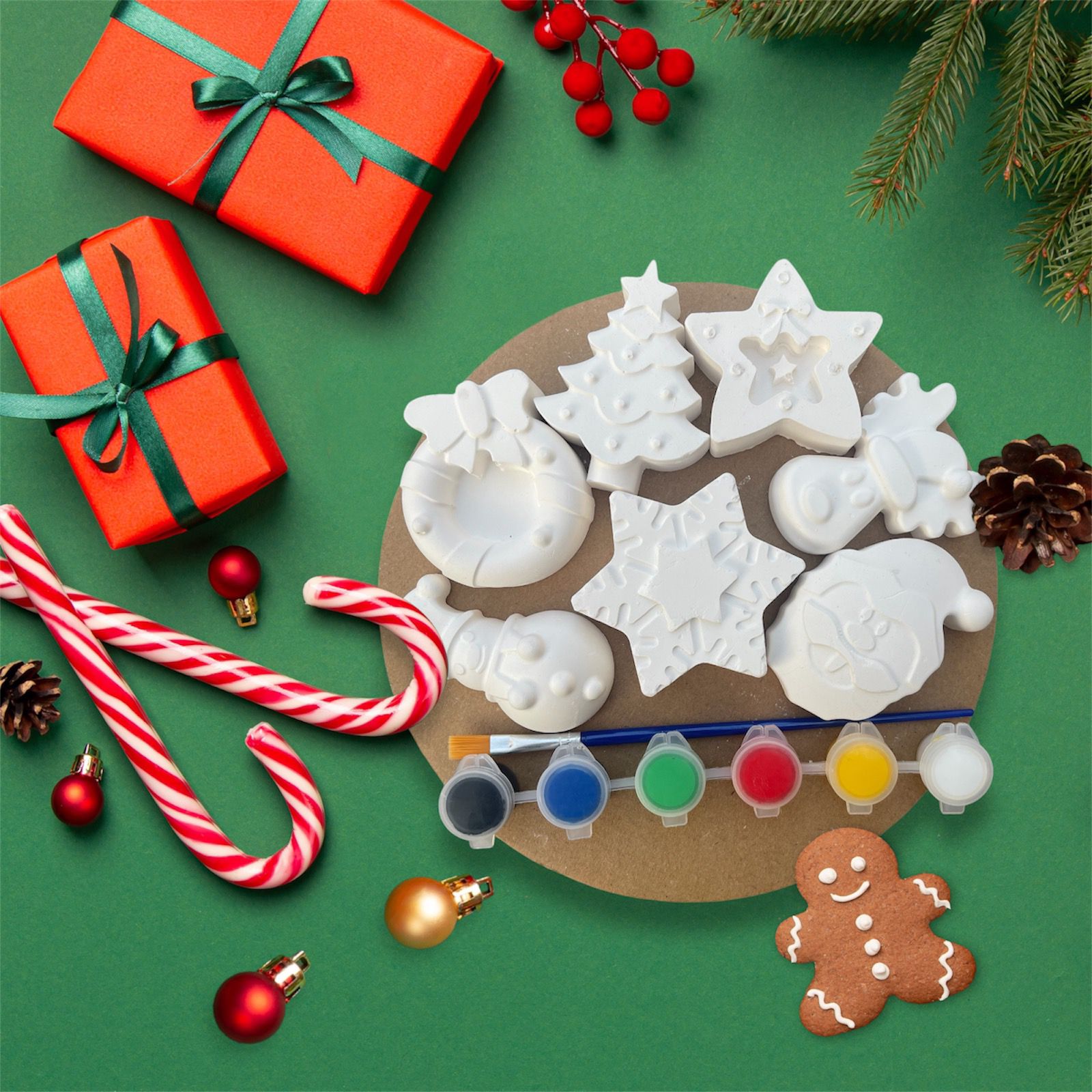 გასაფერადებელი ფორმები თაბაშირის ნაკრები MN-330 საახალწლო მინი 7ც, 2024, აკრილის საღებავი 6ფ, ფუნჯი