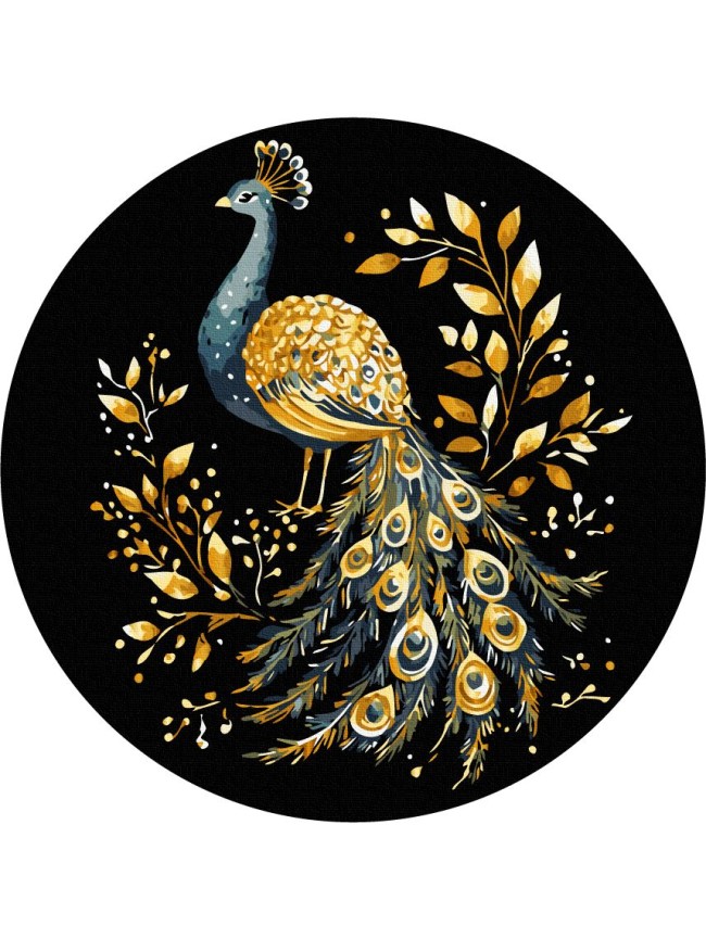 გასაფერადებელი ნომრებით BrushMe მრგვალი RCB00114M Peacock (Size M) O-40სმ ტილო, აკრილის საღ, ფუნჯი