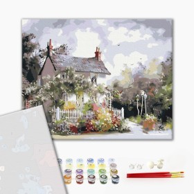 გასაფერადებელი ნომრებით BrushMe BS52417 Cozy suburb 40*50სმ. ტილო, აკრილის საღ, ფუნჯი